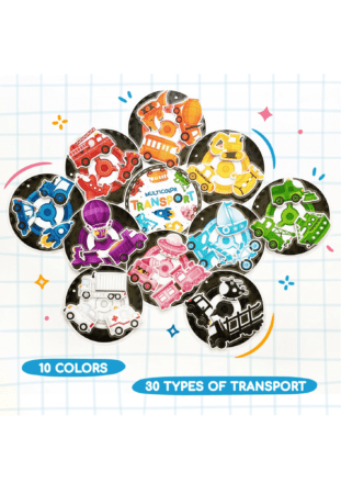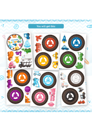 Print this fun mini Busy Book to help your child easily learn colors by playing. Also your child will learn the names of transport and their types: air, water, land. In these printables you will find 10 multicolored wheel-mats and 30 unique types of the transport.