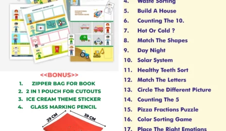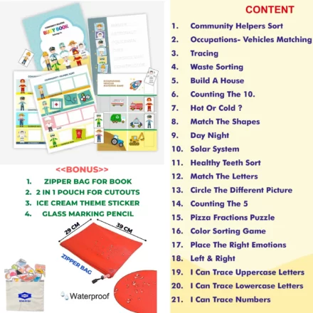 Introduce your child to the world of everyday heroes with Omny’s Community Helper Busy Book. Designed for toddlers ages 2–5, this Montessori-inspired activity binder helps children learn about different professions and community roles through engaging games, puzzles, and hands-on activities.