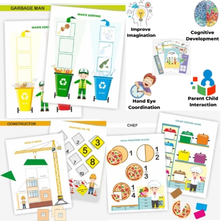 Kids match helpers to their jobs, sort tools, vehicles, and uniforms, and complete puzzles to understand each role. Parents can explain real-world connections while kids play independently.