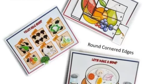 - Laminated activity pages for reuse with dry-erase markers