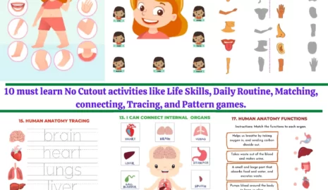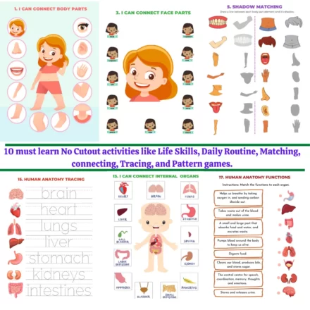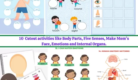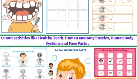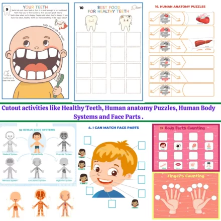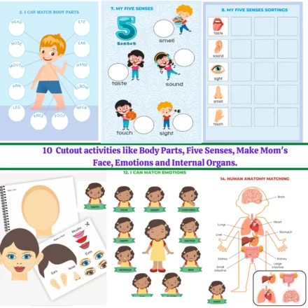 - Montessori-inspired worksheets on human body parts, organs, and senses