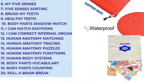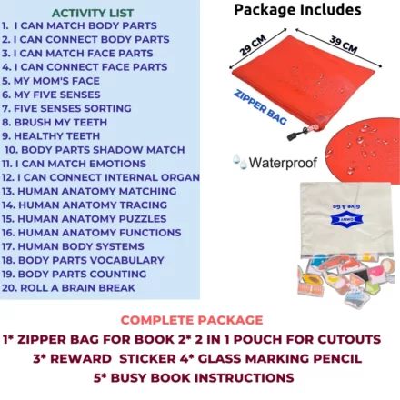 With reusable cutouts, colorful illustrations, and laminated pages, children explore how the body works while developing fine motor skills, logical thinking, and memory. Each activity connects learning with play, giving kids a strong foundation in science while keeping them entertained — all without screens.