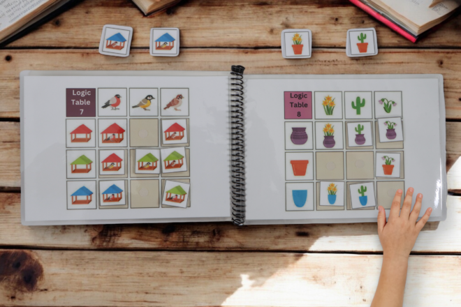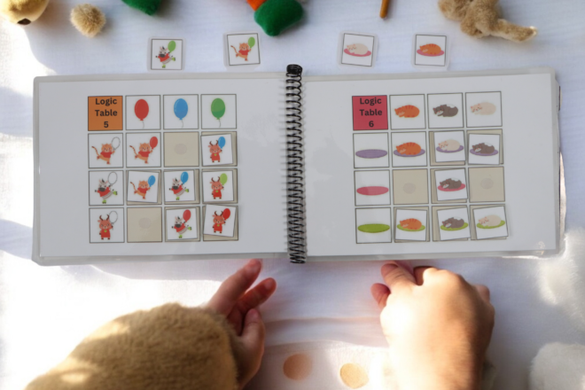 Toddlers engage in fun, interactive exercises that strengthen memory, problem-solving, and fine motor skills. Reusable laminated pages ensure sustainable play and repeated practice.