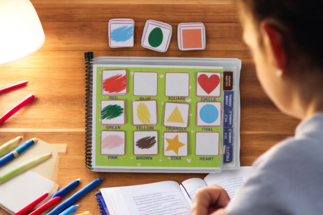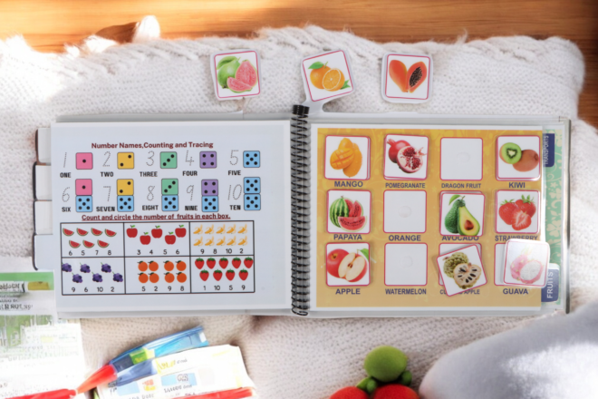 The busy book introduces age-appropriate words through interactive activities that enhance memory, hand-eye coordination, and early literacy. Laminated pages allow repeated use, making learning sustainable and engaging.